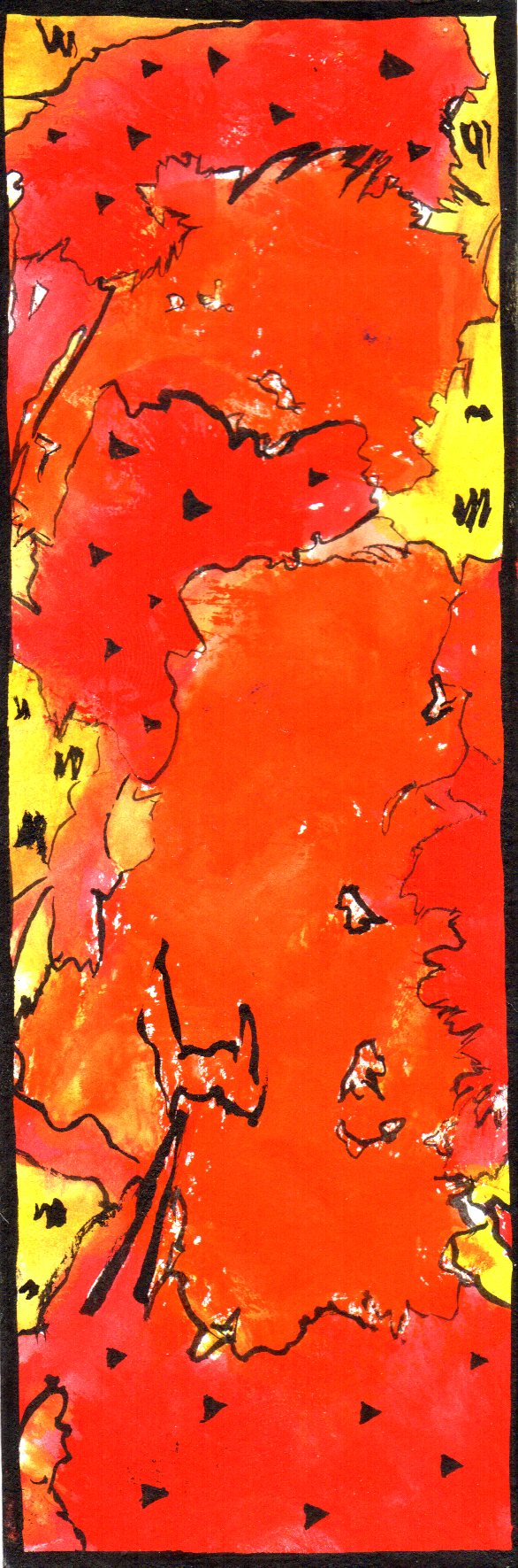 This one-of-a-kind gouache bookmark was created by tracing splotches of gouache, and happened upon creating this lion face from the splotches.